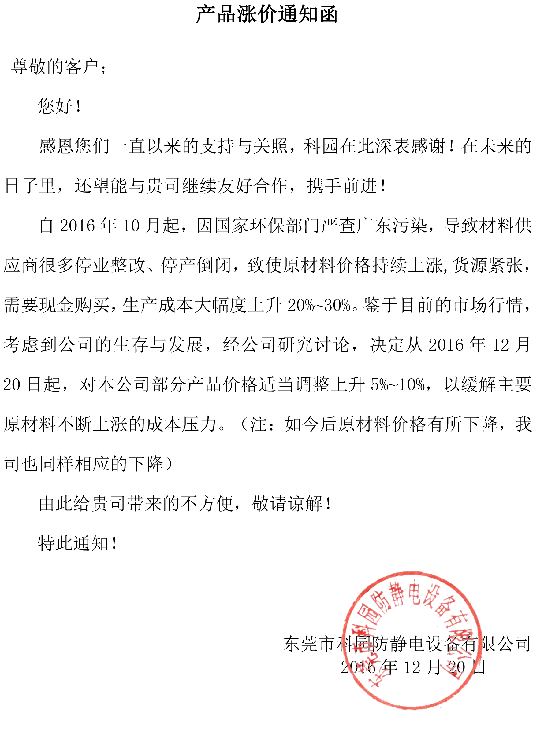 自2016年10月起,因國家環保部門嚴查廣東污染,導致材料供應商很多停業整改、停產倒閉,致使原材料價格持續上漲,貨源緊張,需要現金購買,生產成本大幅度上升20%~30%。