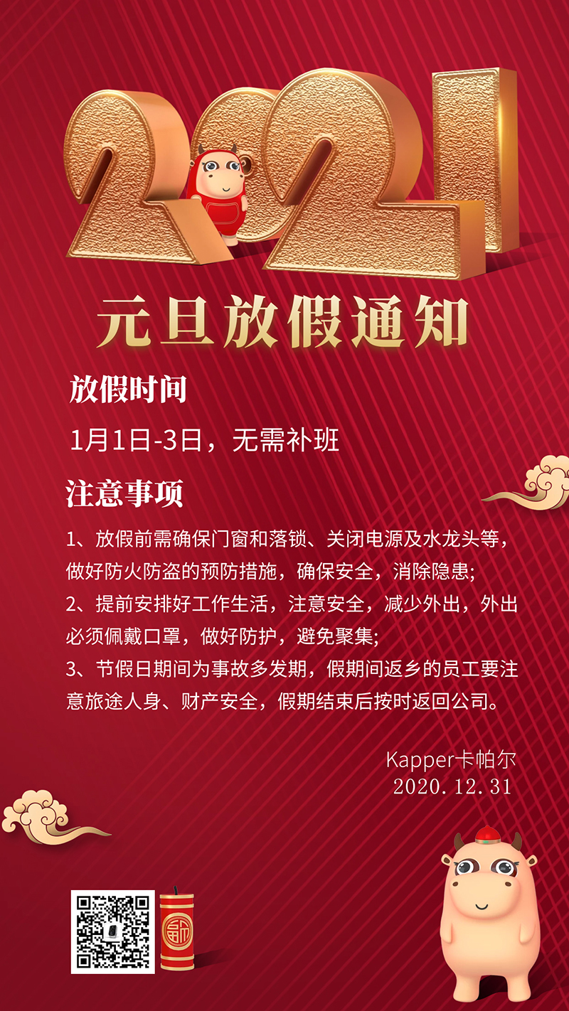 Kapper卡帕爾元旦放假安排