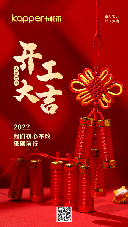 2022年正月初八,開工大吉!Kapper卡帕爾新的一年以新的風貌、新的狀態竭誠為您服務!愿您虎虎生威,虎年大吉,財源滾滾,生意興隆!