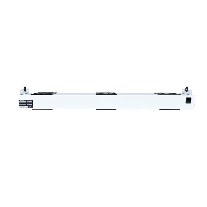 KP1003D第4代半智能型懸掛式三頭離子風機可產生大量的帶有正負電荷的氣流,可以將物體上所帶的電荷中和掉。當物體表面所帶為負電荷,它會吸引氣流中的正電荷,當物體表面所帶為正電荷時,它會吸引氣流中的負電荷,從而使物體表面上的靜電被中和,達到消除靜電的目的。