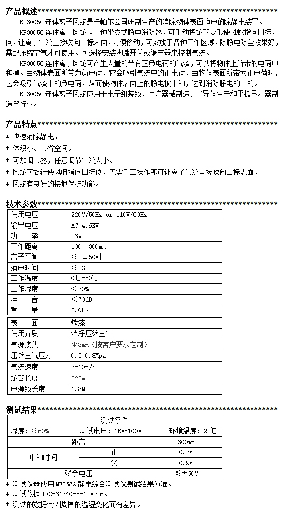 KP3005C第三代連體離子風蛇