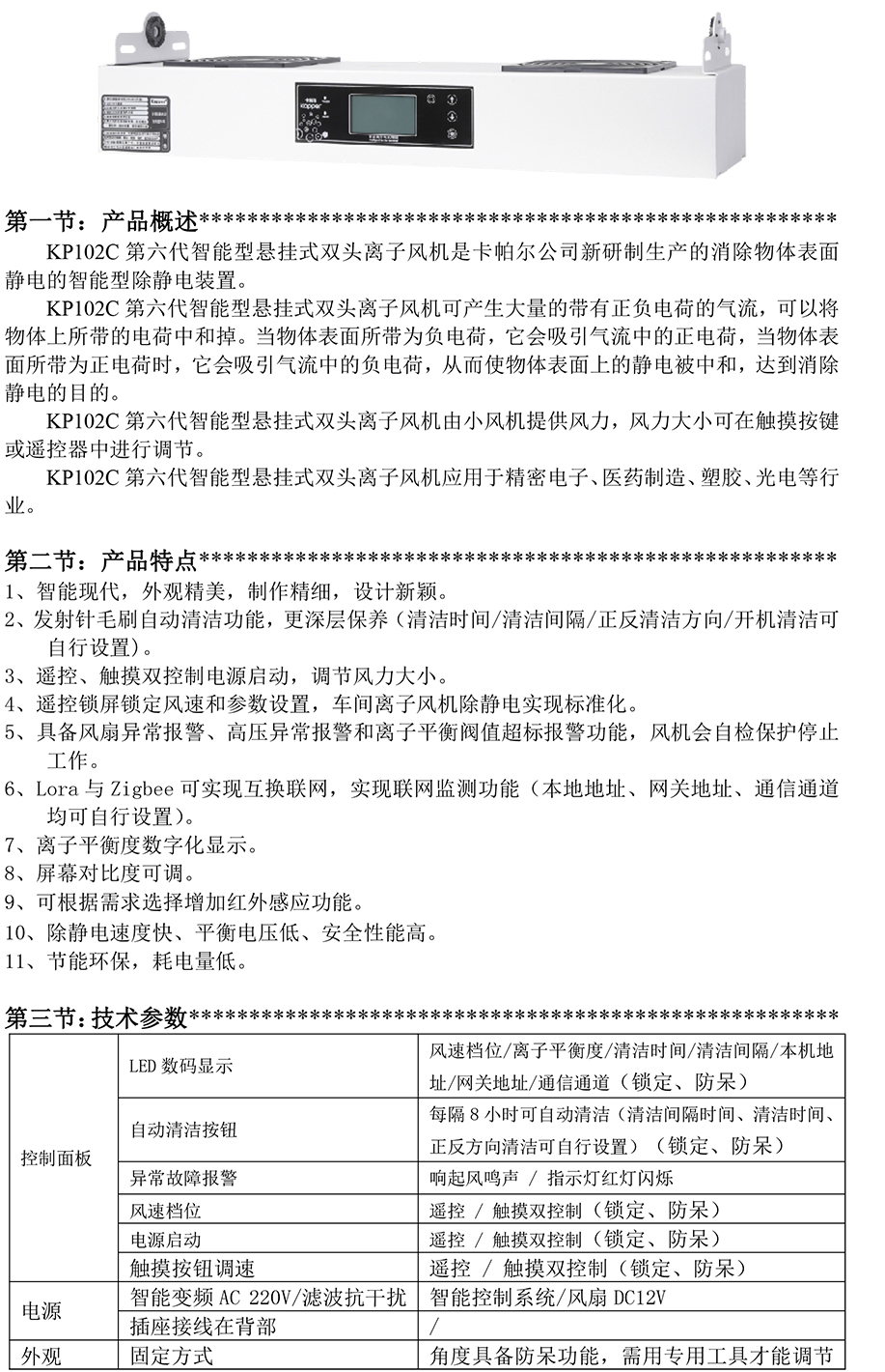 KP102C第六代智能型懸掛式雙頭離子風機