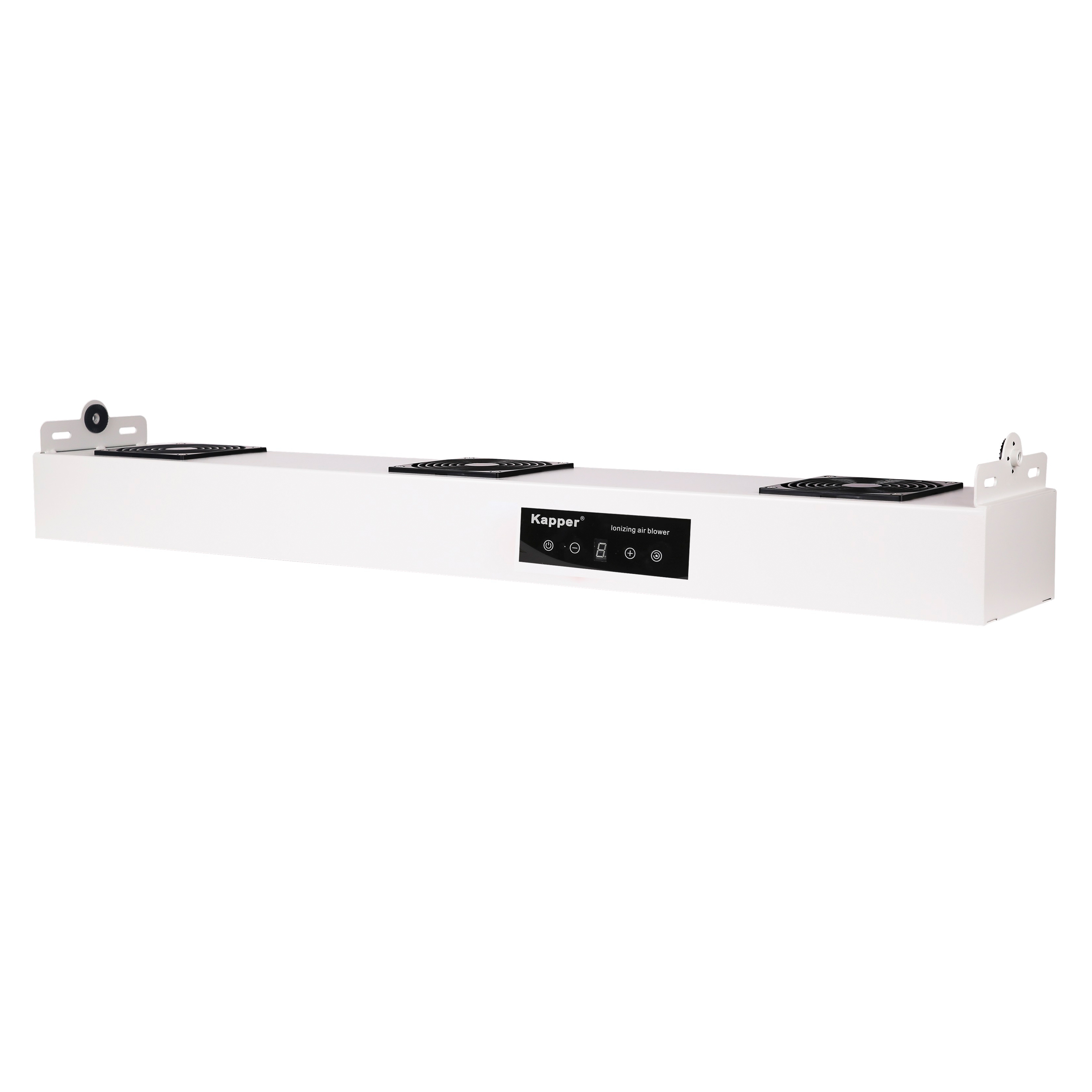 KP103A第5代智能型懸掛式三頭離子風機是卡帕爾公司新研制生產的消除物體表面靜電的智能型除靜電裝置。