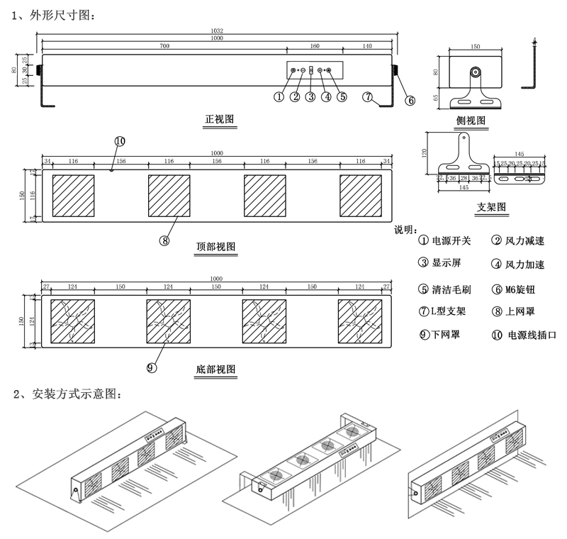 KP104A第5代智能型懸掛式四頭離子風機由小風機提供風力,風力大小可在觸摸按鍵或遙控器中進行調節,發射針毛刷具有自動清潔功能,每隔8個小時自動記憶自動清潔,免手工清潔,并可訂做自行設置清潔時間,具備高壓故障風鳴報警及報警燈提示功能,聽覺,視覺雙重直觀了解設備是否正常工作,風扇在正常運作過程中遇到障礙物,風機會自動短路停止工作。