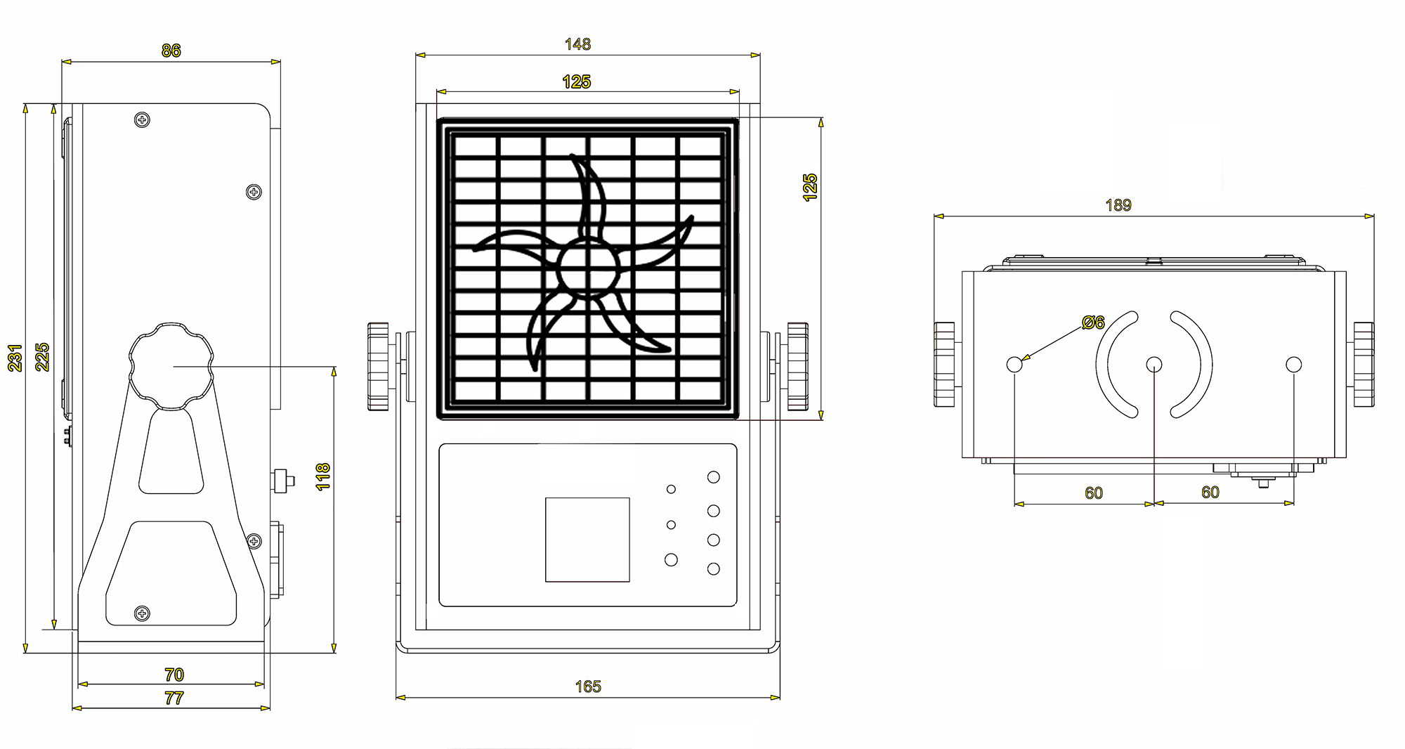 148(L)*86(W)*225(H)mm |